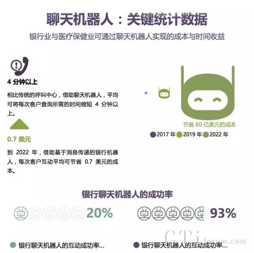 據(jù)該報告預(yù)測,醫(yī)療保健與銀行服務(wù)提供商通過使用機器人可將每次客戶查詢所需的時間縮短4分鐘,平均每次互動可節(jié)省0.5到0.7美元的成本。