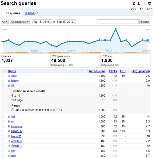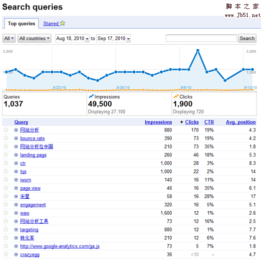 Google WebMaster Tool提供了非常好的搜索引擎結(jié)果數(shù)據(jù),這個(gè)工具還在不斷進(jìn)化中。由于是Google官方提供的,所以可信度不需質(zhì)疑。工具默認(rèn)的排序是按照Impression(展示)排列的,有一些匪夷所思的結(jié)果。