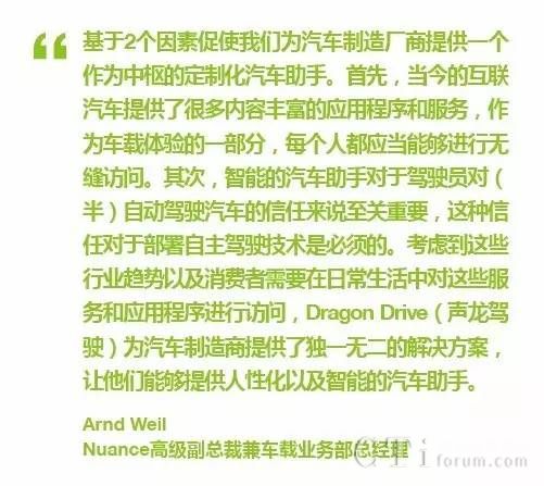 為了使汽車制造商能夠?qū)⑷斯ぶ悄茯?qū)動(dòng)的互聯(lián)汽車變成現(xiàn)實(shí),Nuance擴(kuò)展了Dragon Drive(聲龍駕駛)的會(huì)話和認(rèn)知人工智能能力,讓車?yán)锏拿總€(gè)人都能夠享受更多功能。隨著時(shí)間的推移,Automotive Assistant(汽車助手)能夠理解并學(xué)習(xí)用戶的需求和偏好,讓駕駛員和乘客都能獲得個(gè)性化的體驗(yàn),不論是音樂(lè)選擇、導(dǎo)航、興趣點(diǎn)、新聞,還是暖氣、空調(diào)等車載功能。