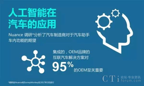 Nuance近期發(fā)布的針對(duì)世界領(lǐng)先汽車制造商開展的一項(xiàng)調(diào)查顯示,超過(guò)90%的受訪廠商確定人工智能對(duì)于他們公司的人機(jī)界面(HMI)戰(zhàn)略是很重要或非常重要,85%的受訪廠商還表示,個(gè)性化的體驗(yàn)也是很重要或非常重要。此外,43%的受訪廠商指出,人工智能對(duì)于提升車載系統(tǒng)的整體用戶滿意度將產(chǎn)生最為重要的影響。