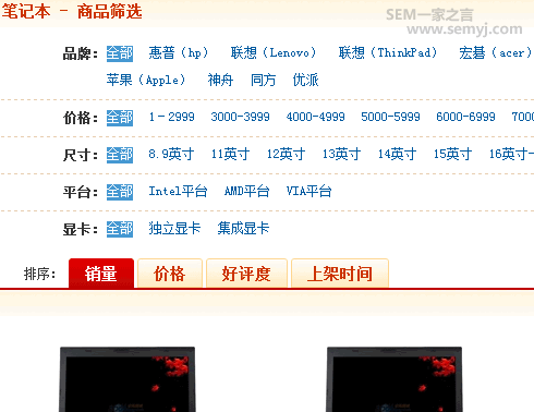 京東商城筆記本分類頁面: http://www.360buy.com/products/670-671-672-0-0-0-0-0-0-0-1-1-1.html