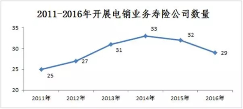 《報(bào)告》顯示,截至2016年年底,共有29家壽險(xiǎn)公司開(kāi)展電銷(xiāo)業(yè)務(wù),較2016年年初減少了3家。《報(bào)告》預(yù)計(jì)未來(lái)幾年,不排除部分公司將逐步退出電銷(xiāo)市場(chǎng)。