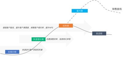 To B(企業(yè)服務(wù),以下簡稱ToB)類公司為驅(qū)動(dòng)業(yè)績的可持續(xù)增長,在不同的發(fā)展階段(如圖1),對客戶獲取、潛客線索管理和優(yōu)化以及客戶服務(wù)等業(yè)務(wù)流程都需要進(jìn)行持續(xù)優(yōu)化,從而實(shí)現(xiàn)整體經(jīng)營績效的提升。在企業(yè)發(fā)展早期,通常會(huì)投入大量資金來快速完成客戶獲取和積累;在快速增長期,如何改善銷售效率、線索轉(zhuǎn)化率等成為企業(yè)管理者的關(guān)注重點(diǎn);無論在哪個(gè)階段,提供優(yōu)質(zhì)的客戶服務(wù)都是企業(yè)可持續(xù)增長的重中之重,如何增強(qiáng)客戶黏性、提升客戶滿意度,從而保障客戶續(xù)約率和提升NPS(Net Promoter Score,凈推薦值),成為每一個(gè)企業(yè)服務(wù)類企業(yè)業(yè)績可持續(xù)增長的終極奧義。