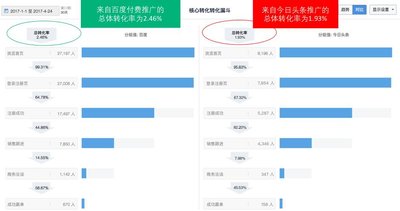 圖5“百度”和“今日頭條”付費(fèi)渠道的營銷漏斗最終轉(zhuǎn)化