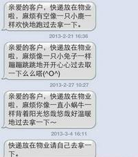 “好的,請(qǐng)您在48小時(shí)內(nèi)前往XX超市取快遞,提貨碼已發(fā)送至您的手機(jī)。”