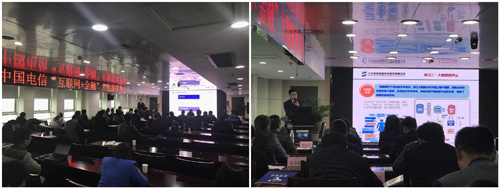 2017年3月30日,中國(guó)電信“互聯(lián)網(wǎng)+金融”大數(shù)據(jù)推介會(huì)在江蘇電信鹽城分公司舉辦。該次會(huì)議針對(duì)金融行業(yè)的現(xiàn)狀,結(jié)合中國(guó)電信大數(shù)據(jù)的應(yīng)用,向參會(huì)的多家銀行、證券、保險(xiǎn)公司推介了電信業(yè)務(wù)。