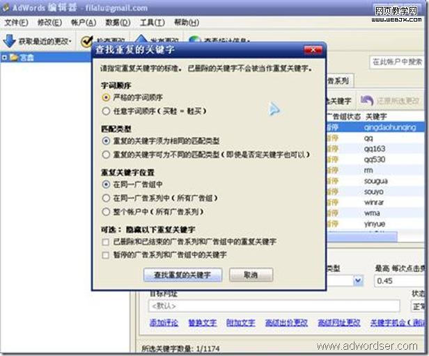 將所有關(guān)鍵詞導(dǎo)入編輯器,選擇“工具-查找重復(fù)的關(guān)鍵字”