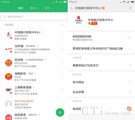 (電話邦品牌號(hào)——來(lái)去電頁(yè)面展示效果)