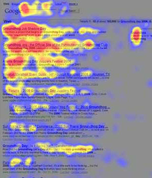 4、人們對搜索引擎,比如Google的搜索結(jié)果頁面的反應(yīng)也是F型的,人們往下看搜索結(jié)果,也是勉強的,換句話說,將你的網(wǎng)站排名在搜索結(jié)果頁的前一兩位,直接決定了你網(wǎng)站受關(guān)注的程度。