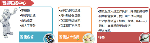 中興通訊新一代聯(lián)絡(luò)中心智能機(jī)器人模塊可對(duì)用戶的短信、微博、IM等實(shí)現(xiàn)智能自動(dòng)應(yīng)答,實(shí)現(xiàn)套餐、話費(fèi)、業(yè)務(wù)查詢等業(yè)務(wù)。如智能機(jī)器人無法解決問題時(shí),可轉(zhuǎn)人工坐席提供服務(wù),實(shí)現(xiàn)多媒體渠道協(xié)同。
