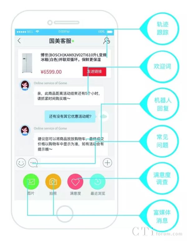 支持富媒體消息,表現(xiàn)能力強。比如消費者可以發(fā)送位置,圖片,訂單消息等類型消息。這種類型的富媒體消息,往往很難通過電話描述。