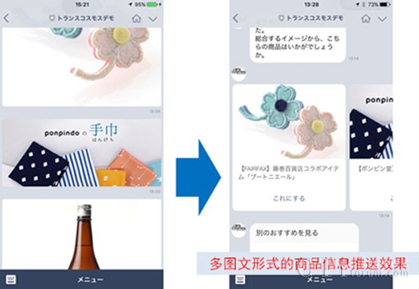 transcosmos集團(以下簡稱 transcosmos;總部:日本東京涉谷區(qū);總裁兼COO:奧田昌孝;東證代碼:9715)自2月起推出基于LINE平臺的"Messenger App電子商務(wù)動態(tài)對話服務(wù)",能夠?qū)崿F(xiàn)以多圖文形式,向不同的顧客自動推薦合適的商品。