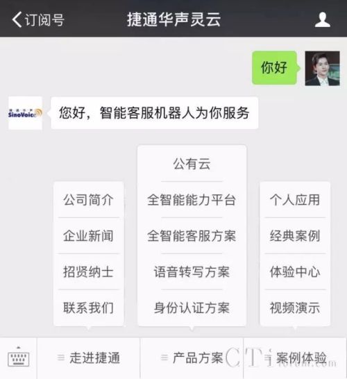 點擊訂閱進入公眾號后,菜單欄已經(jīng)全面改版升級,讓用戶可以更加清晰、全面、深度了解捷通華聲公司以及靈云品牌。