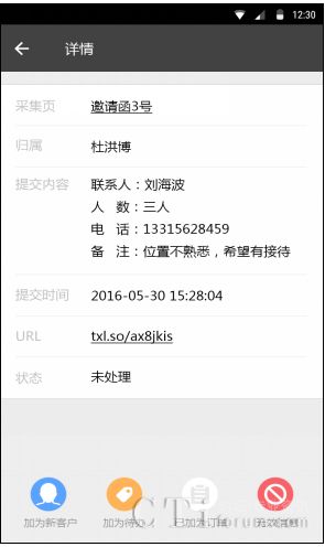 和CRM的緊密關(guān)聯(lián),讓處理速度加快,銷售同事在掌中寶app上,就可以把注冊線索加入客戶、加為待辦或者加為訂單。添加以后,可以在CRM中詳細(xì)編輯其他字段和明細(xì)的內(nèi)容。