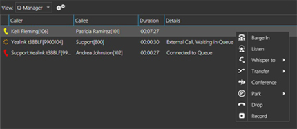 - 聽:允許你在沒有通知呼叫者或座席的情況下聆聽一個正在進行的呼叫