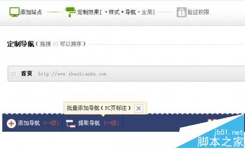 第五步,設(shè)置導(dǎo)航,可以自己添加,也可以自動(dòng)抓取等,然后點(diǎn)擊下一步,如下圖:
