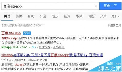 第一步,百度搜索百度siteapp,找到他們的官方網(wǎng)站,如下圖: