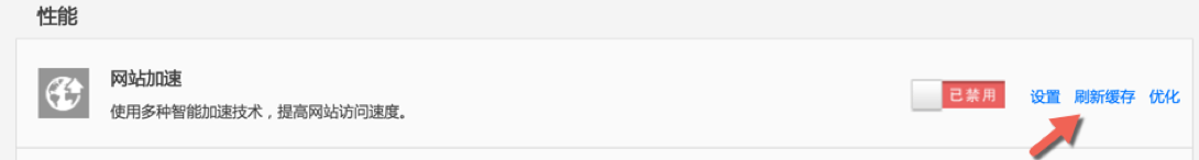 (3)在“安全寶”功能界面,“性能”功能區(qū),“網(wǎng)站加速”功能處點(diǎn)擊“刷新緩存”,如圖: