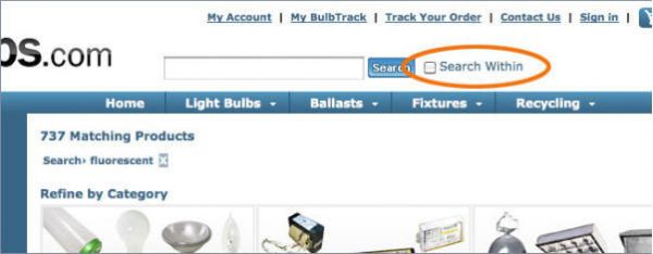 bulbs.com里的局部搜索是以勾選框的方式出現(xiàn)