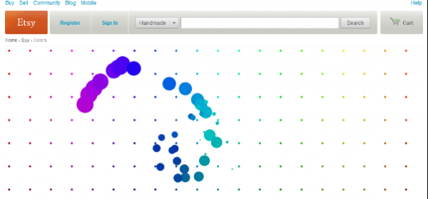 每一個此類服務都代表著一種特定的搜索類型。但是搜索請求并不需要是一個完整的東西。Retrievr允許用戶通過手繪圖形或線框查找相關信息。在Etsy里則可以通過于色盤里選擇顏色進行搜索:
