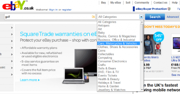 eBay上的搜索可以被局限為僅針對特定的一類商品