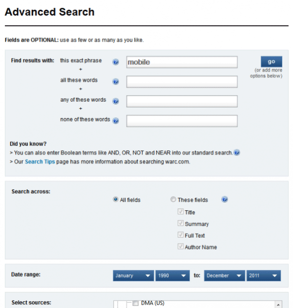 WARC里的高級搜索就是填表格