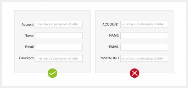 2、英文標(biāo)簽避免全部大寫一些英文界面的表單設(shè)計(jì),我們要避免標(biāo)簽的全大寫。全部大寫的標(biāo)簽容易造成閱讀和瀏覽上的困難。