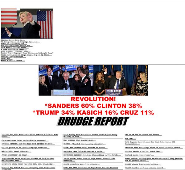 不可思議吧,上圖是2016年The Drudge Report網(wǎng)站的主頁