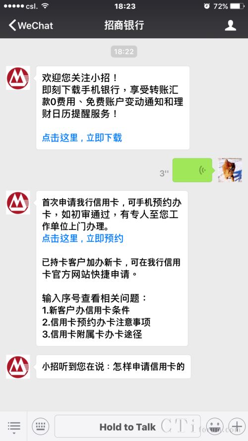 在招商銀行的WeChat帳戶中,所采用的是小i系統(tǒng),它支援語音信息,分析用戶提出的問題,如「怎樣申請信用卡」,并即時提供答案。小i機器人總裁及CTO朱頻頻稱,招行使用智能客服后,雖然減少客服人手,但客服并無失業(yè),只是改為從事更多關(guān)于市場營銷的工作。他相信,智能客服不會搶人的飯碗,因人類不能只從事重復(fù)性高、低水平的工作,可從事更多具創(chuàng)意的工作。