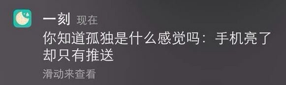 等一個人回微信,看到屏幕亮了以為是他的回復,結果卻被一個APP捕捉到了內(nèi)心的孤獨,在用戶的百無聊賴之際,這個推送提供了用戶打開APP的觸發(fā)點。