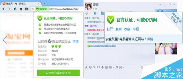4. 用戶(hù)終端展示(推薦):這種方式就是在用戶(hù)終端如:瀏覽器、聊天工具、安全軟件等展示認(rèn)證標(biāo)識(shí),這種展現(xiàn)的效果要好一些。