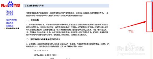 3、打開隱私權(quán)保護聲明,滾動條拉到中間部分:
