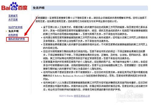 2、點擊打開,可以看到左邊“隱私權(quán)保護聲明”: