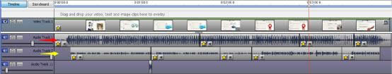 綠色箭頭就是將錄制好的視頻拖拉到時間軸上,基本上不需要做修改,因為時間軸是一致的。