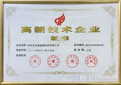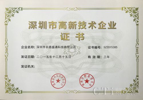長鑫盛通順利通過了國家高新技術企業(yè)認證,捧回了高新技術企業(yè)證書;而早在一年前,長鑫已經(jīng)通過了深圳市高新技術企業(yè)的認證。
