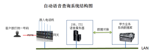 自動(dòng)語音查詢系統(tǒng)組成:網(wǎng)關(guān)+服務(wù)器+IVR軟件,如下圖所示