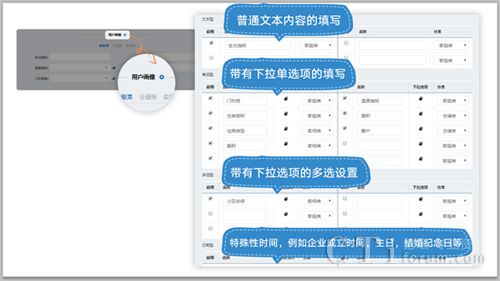 其次,在用戶畫像定義過程中,支持單選、多選、日期和填空;其中的多選蠻不錯的。舉個例子來說,我有做化妝品的客戶希望把用戶比較偏愛的品牌記錄下來,方便后續(xù)做品推促銷的篩選,就可以把這個特征定義為多選,比如:蘭蔻、雅詩蘭黛、資生堂、迪奧、SKII…遺憾的是,pc上的用戶畫像操作很方便,預設(shè)也不難;只是plus的app版本,xtools掌中寶,目前還沒有用戶畫像功能,咨詢400說正在開發(fā),不久會與pc同步。有必要在app上盡快實現(xiàn),比如一線的化妝品店面,和客戶溝通時難道必須開電腦嗎?腦補化妝品專柜和店面場景,可能性不高。