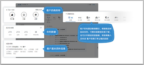 但是!在plus版本,客戶視圖里出現(xiàn)了一個全新的,以時空為順序的:跟單時間線。從數(shù)據(jù)邏輯看:所有與這個客戶有關(guān)的子數(shù)據(jù)全部混合在時間內(nèi)排時序;從業(yè)務(wù)邏輯來看,跟單全程的完美復盤工具。我不太懂技術(shù),但我很喜歡這種全子表排序的人機交互;不需要再從一大堆空白模塊中尋找有數(shù)據(jù)的部分,只需要看一個點:時間線。
