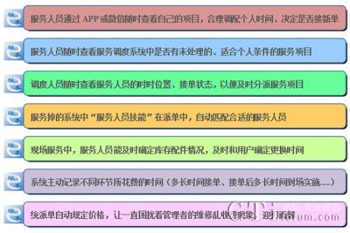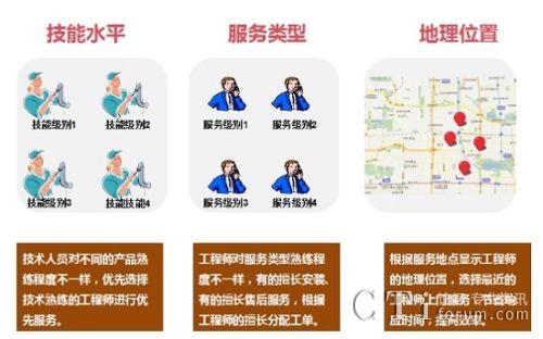 調度人員在分派任務時,可以通過技能水平、服務類型、地理位置等等系統預先設置好的調度方案,自動調度合理的服務人員。