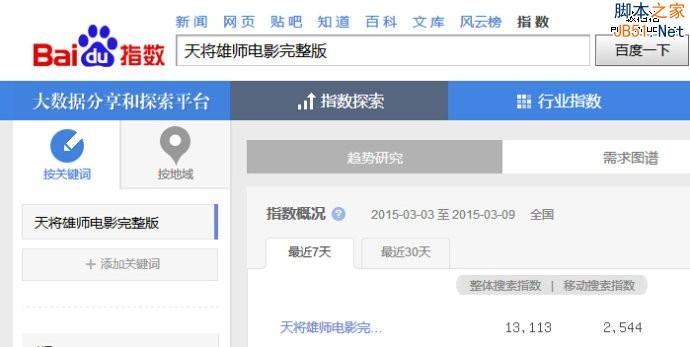 就連“天將雄師電影完整版”這個詞的百度指數(shù)都有10000多,如下圖: