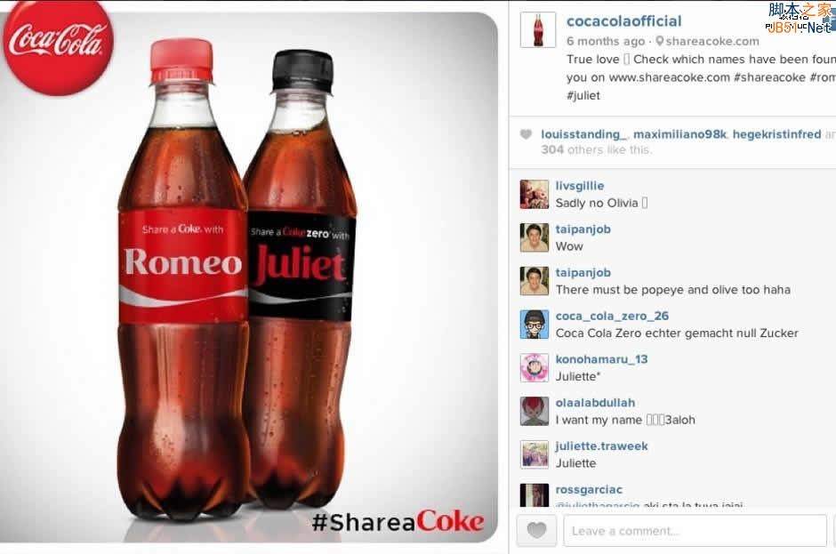 可口可樂公司今年夏天在全美發(fā)起名為“分享可樂”的宣傳活動。他們選取全美250個最流行、最普遍的名字并將這些名字印在可口可樂的瓶子上。消費者可以喝到印有自己名字的可口可樂,然后通過社交媒體讓其他人知道這件事情。如果你的名字恰好不在其列,你也可以在當地的購物中心進行免費定制。這次活動最終在各大社交媒體上引發(fā)了超過12.5萬張?zhí)?,收獲了96%的正面評價。