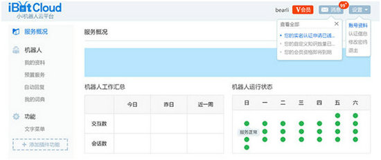 對(duì)中小企業(yè)和開(kāi)發(fā)者們而言,如何更方便的使用產(chǎn)品是他們最關(guān)注的問(wèn)題。在此次的更新版本中,iBot Cloud優(yōu)化了操作界面,讓功能服務(wù)一目了然,可提供更好的用戶(hù)體驗(yàn);同時(shí)還能提供機(jī)器人工作匯總與機(jī)器人運(yùn)行狀態(tài)的報(bào)告,有效監(jiān)測(cè)服務(wù)器是否正常使用。iBot Cloud打造面向最終客戶(hù)的自助式運(yùn)營(yíng)的管理后臺(tái),實(shí)現(xiàn)客戶(hù)自助化的管理和運(yùn)營(yíng)智能化。此外,小i每月對(duì)聊天庫(kù)進(jìn)行更新,保證最新的內(nèi)容也能包含在內(nèi)。