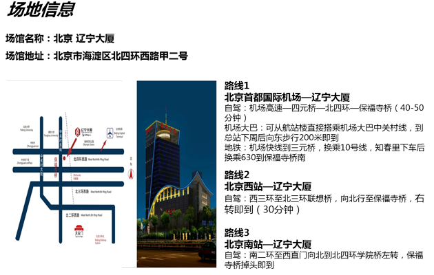 | 機場 | 北京首都國際機場 | 33公里 | 從首都機場出發(fā),步行約50米,乘機場5線(首都機場-中關(guān)村(4號橋)),在中關(guān)村(4號橋)站下車到達遼寧大廈 |