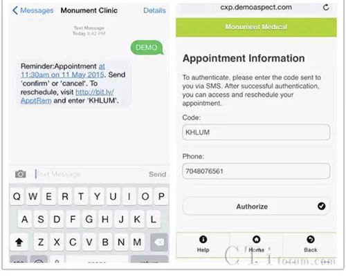 (推送包含URL和密碼的短消息,方便患者確認或修改預約)