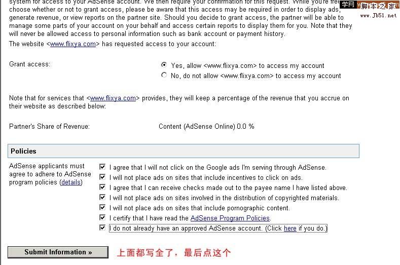 上面都填好后 點(diǎn) Submit Information 這個(gè)按鈕