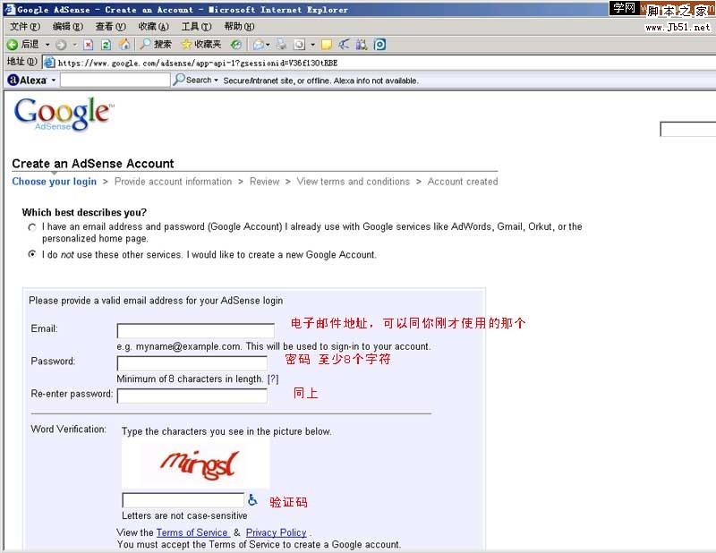 如圖, 在"Do you already have a Google Adsense account? "這,選擇"No"