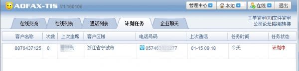 AOFAX呼叫中心計(jì)劃任務(wù)