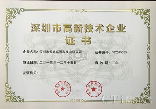 經(jīng)過(guò)不懈努力,長(zhǎng)鑫順利通過(guò)了深圳市高新技術(shù)企業(yè)認(rèn)證,拿到了證書(shū),即將走上人生的巔峰!