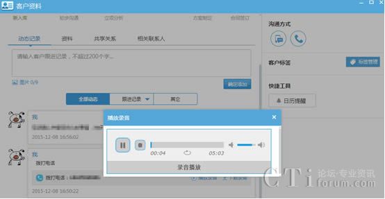 在呼叫中心騰訊EC定制版(企訊V2.0)中,長(zhǎng)鑫盛通充分發(fā)揮在企業(yè)呼叫中心應(yīng)用上的領(lǐng)先技術(shù)優(yōu)勢(shì),將EC強(qiáng)大的客戶管理跟進(jìn)功能與企業(yè)通訊系統(tǒng)完美結(jié)合,成功打通了電腦端、手機(jī)端和企業(yè)通訊系統(tǒng)。呼叫中心騰訊EC定制版實(shí)現(xiàn)了來(lái)去電彈屏、電話錄音、企業(yè)付費(fèi)撥打電話等功能,有效的提高了銷售人員的工作效率,也進(jìn)一步加強(qiáng)了公司對(duì)銷售人員的監(jiān)管。因此,EC加呼叫中心的模式一經(jīng)推出,即受到客戶的認(rèn)可和歡迎。