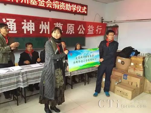 張總代表愛通神州助學(xué)基金向郝車倌小學(xué)捐贈三萬余元的物資